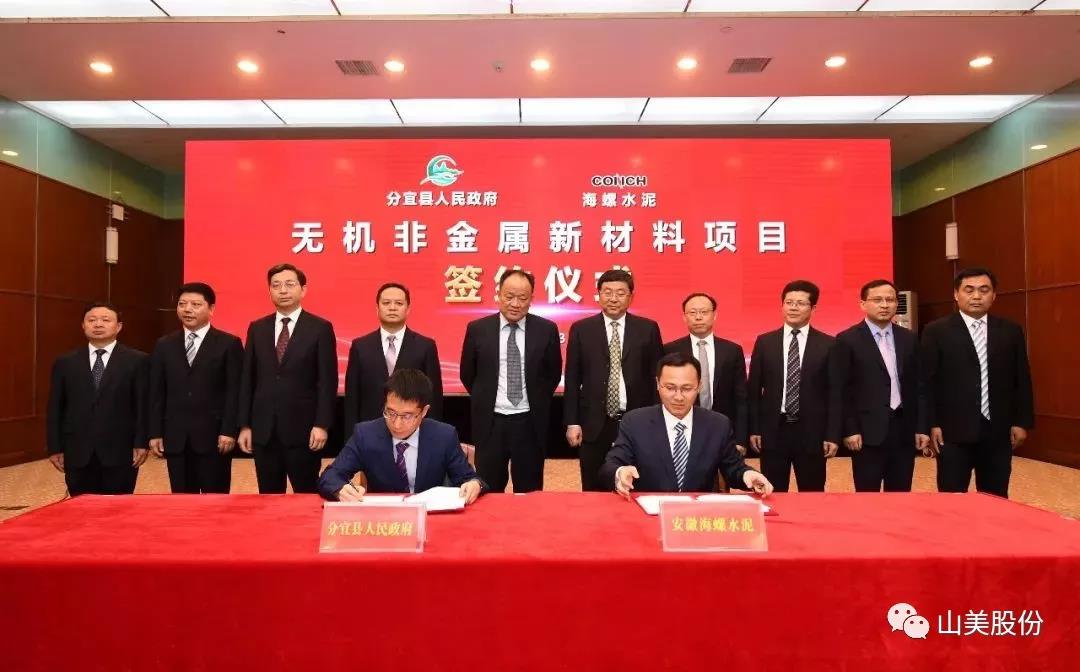 近日,安徽海螺水泥股份有限公司總投資20億元的無機(jī)非金屬新材料項目與江西省新余市分宜縣正式簽約,包括年產(chǎn)500萬噸建筑骨料、100萬噸機(jī)制砂及裝配式新型建筑材料等項目。市委書記蔣斌,市委副書記、市長猶王瑩等相關(guān)政府領(lǐng)導(dǎo),與安徽海螺集團(tuán)有限責(zé)任公司董事長高登榜等企業(yè)高管出席簽約儀式。海螺分宜今年初已投產(chǎn)的一條年產(chǎn)100萬噸機(jī)制砂生產(chǎn)線,國產(chǎn)主機(jī)設(shè)備全部選擇山美股份,其余主機(jī)設(shè)備全部使用歐洲進(jìn)口設(shè)備。